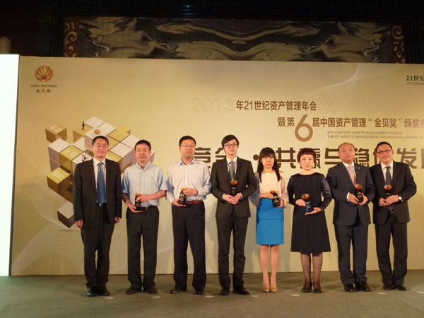 6月26日由中國(guó)具有廣泛影響的財(cái)經(jīng)媒體《21世紀(jì)經(jīng)濟(jì)報(bào)道》主辦的“2013年21世紀(jì)資產(chǎn)管理年會(huì)”暨“第六屆中國(guó)資產(chǎn)管理金貝獎(jiǎng)?lì)C獎(jiǎng)典禮”在上海舉行。本次評(píng)選我公司共入圍了“最佳綜合服務(wù)信托公司”及“最佳品牌建設(shè)信托公司”兩個(gè)獎(jiǎng)項(xiàng)。最終我公司通過(guò)優(yōu)質(zhì)的品牌理念和良好的品牌形象,榮獲了“2013年度最佳品牌建設(shè)信托公司獎(jiǎng)”,公司副總陳杰同志代表我公司登臺(tái)領(lǐng)獎(jiǎng)。