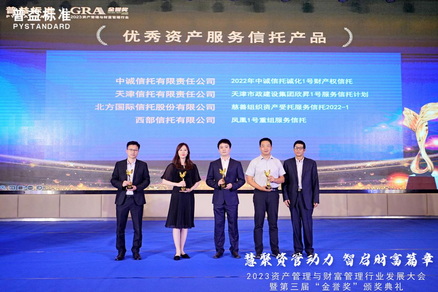 6月16日,由普益標(biāo)準(zhǔn)主辦的“慧聚資管動力智啟財富篇章——2023資產(chǎn)管理與財富管理行業(yè)發(fā)展大會暨第三屆‘金譽(yù)獎’頒獎典禮”在成都成功舉行。天津信托憑借穩(wěn)健的經(jīng)營業(yè)績和對區(qū)域經(jīng)濟(jì)發(fā)展作出的突出貢獻(xiàn),以及欣昇1號企業(yè)市場化重組服務(wù)信托優(yōu)異的創(chuàng)新表現(xiàn),分別斬獲“卓越區(qū)域影響力信托公司”和“優(yōu)秀資產(chǎn)服務(wù)信托產(chǎn)品”兩項大獎。